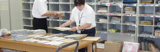 北海道電力本店ビル内にて、書類や郵便物、宅配便、月刊誌などの仕分け・受発信業務を行っています。常に、速く確実にお届けすることが私たちの仕事です。書類だけでなく、お客さまに笑顔を届けられるように、日々心がけています。