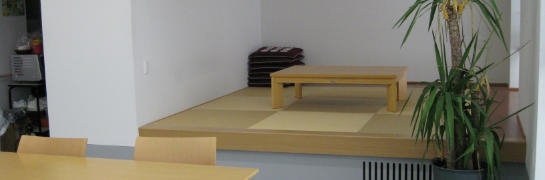 ■車椅子からの乗降りを考慮した45cmの高さの食堂奥の和室。