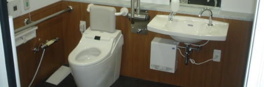 ■車椅子利用者に配慮したトイレ。